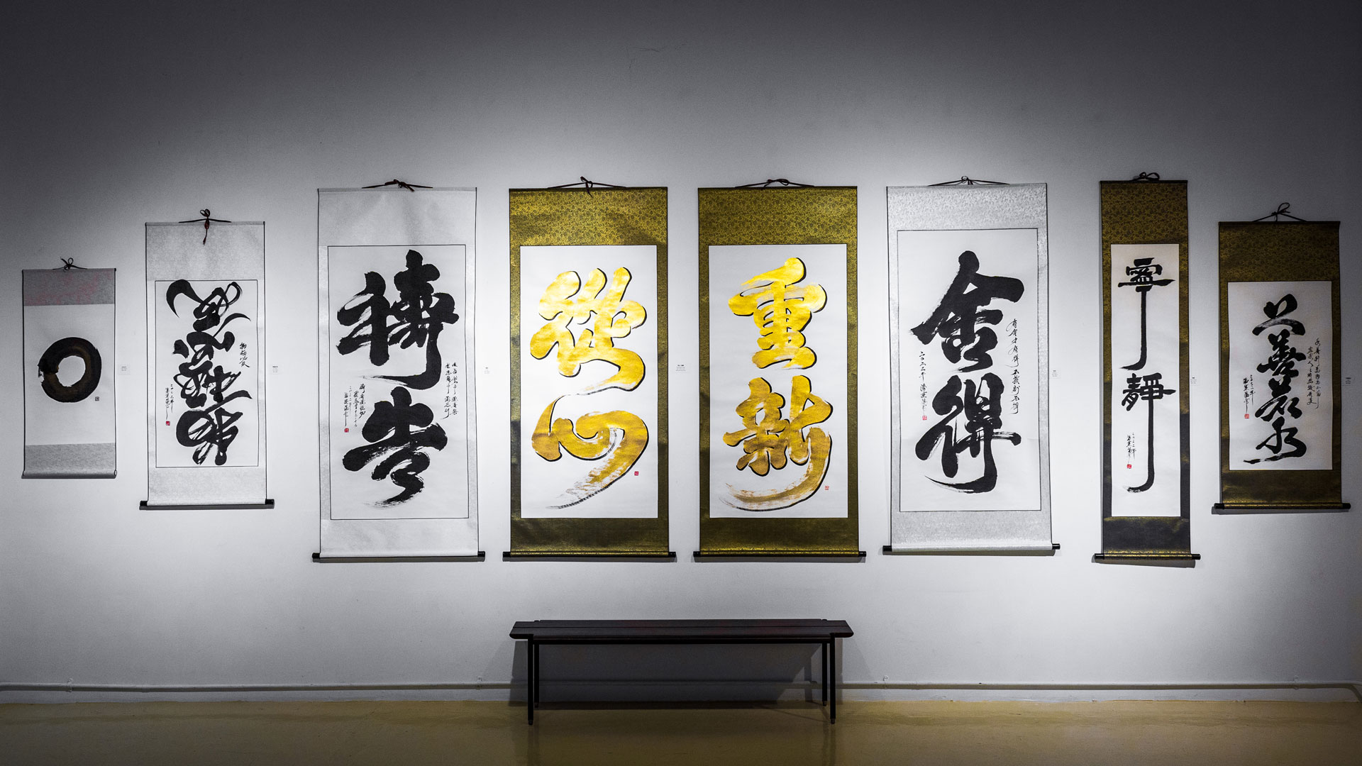 【重新,從心。】從8月8日開展至9月25日。這次的個人展會展示從地上到牆壁的書法作品以及15手寫卷軸。歡迎各位來觀展。
