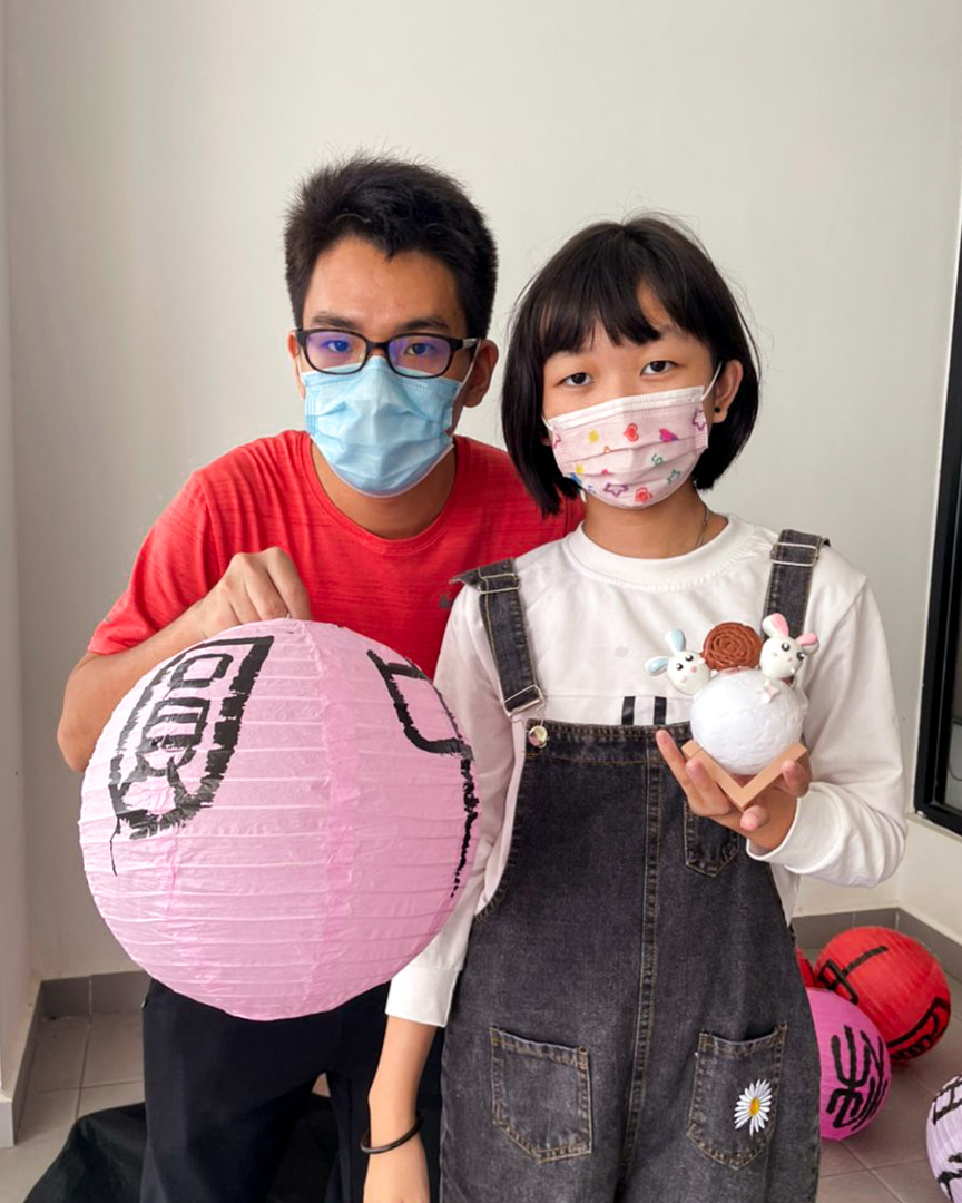 In this workshop, each of them will bring home their own handwritten calligraphy lantern with the words ‘中秋月圓’ which is in conjunction with the celebration of the Mid-Autumn Festival.